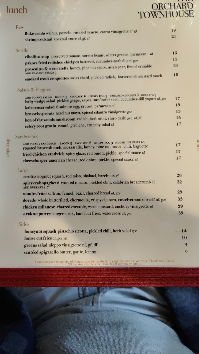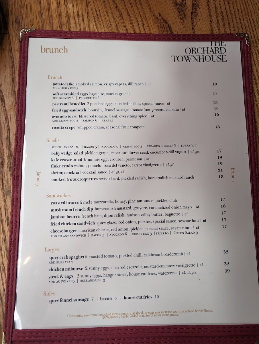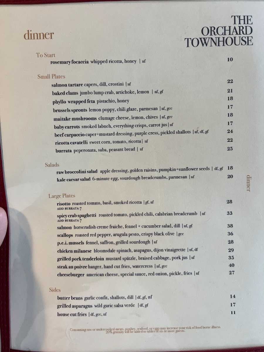 Overall, The Orchard Townhouse’s menu is a well-curated blend of comforting favorites and gourmet dishes. With a variety of options for every appetite, it provides a satisfying dining experience for all guests.